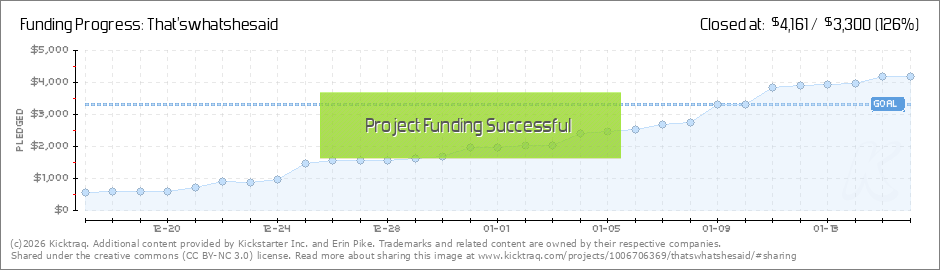 Help your backers reach your daily goals and help others see how you're doing. It's easy, with Kicktraq Mini.Here are a few quick snippits of code you can use to embed your personalized widget on your website, in your blog, and even on your favorite forum.