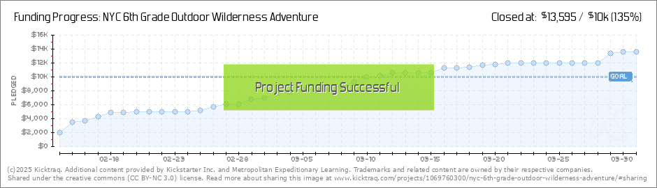 Late last night, we received word that our project was fully funded! With over 100 backers, we are getting closer to being able to send our entire 6th grade class into the woods for a life-changing experience in May. Throughout this campaign,... (Read More)