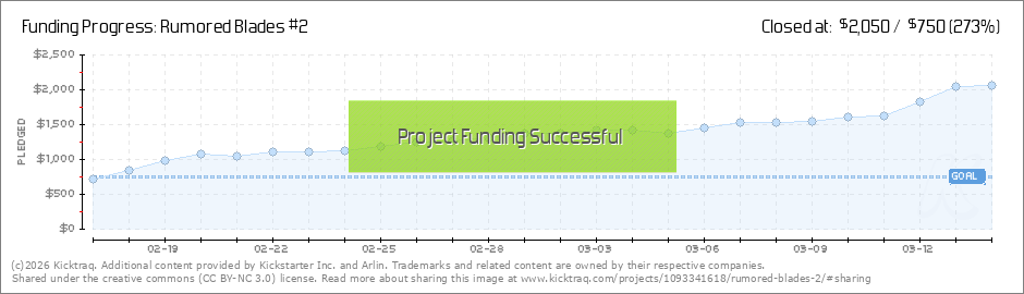 Help your backers reach your daily goals and help others see how you're doing. It's easy, with Kicktraq Mini.Here are a few quick snippits of code you can use to embed your personalized widget on your website, in your blog, and even on your favorite forum.