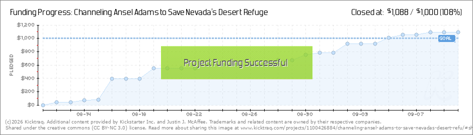 I'm offering three new rewards in this project to get funding going again into the final stretch. We have $446 more to raise in just 18 days. I'll be offering three workshops/photo walks at the Desert National Wildlife Refuge. Intro to film and... (Read More)