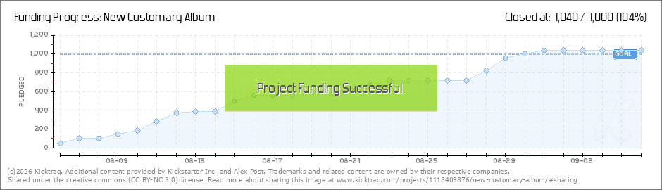 Help your backers reach your daily goals and help others see how you're doing. It's easy, with Kicktraq Mini.Here are a few quick snippits of code you can use to embed your personalized widget on your website, in your blog, and even on your favorite forum.