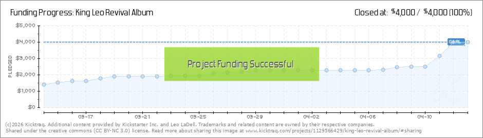 After the first day of the King Leo Revival Album project, things are looking very promising. I feel incredibly fortunate, and I deeply appreciate your pledges! I am closing in on the last stages of recording: backup vocals for a few songs will be... (Read More)