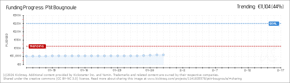 Help your backers reach your daily goals and help others see how you're doing. It's easy, with Kicktraq Mini.Here are a few quick snippits of code you can use to embed your personalized widget on your website, in your blog, and even on your favorite forum.