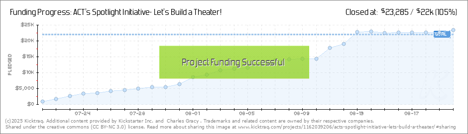 As of a few hours ago, we SURPASSED our goal of $22,000! THANK YOU to everyone who has already pledged and shown your support for ACT Theater Company. Your faith and commitment mean everything to us as we strive to continue our mission and bring... (Read More)