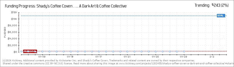 Help your backers reach your daily goals and help others see how you're doing. It's easy, with Kicktraq Mini.Here are a few quick snippits of code you can use to embed your personalized widget on your website, in your blog, and even on your favorite forum.