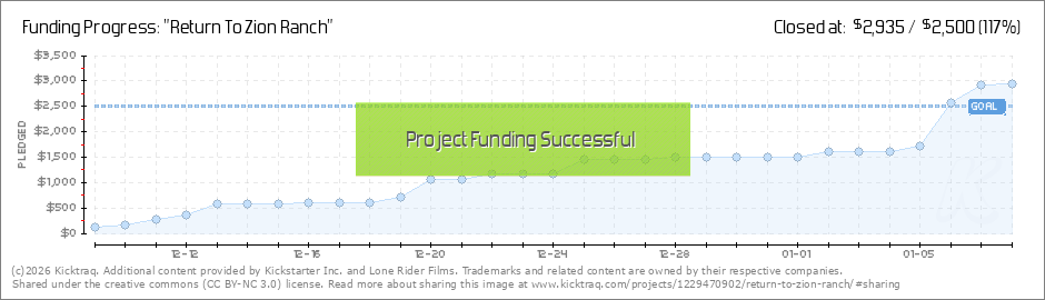 Thank you very much!!!! We are extremely grateful for all the support! You guys and gals are a huge blessing!! We should be releasing "Return To Zion Ranch" about mid February. We will keep you updated on the time frame. So you can expect your... (Read More)
