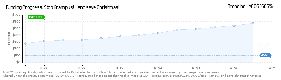 Help your backers reach your daily goals and help others see how you're doing. It's easy, with Kicktraq Mini.Here are a few quick snippits of code you can use to embed your personalized widget on your website, in your blog, and even on your favorite forum.