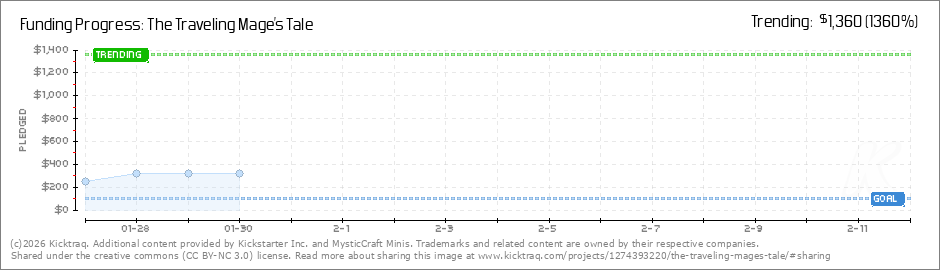 Help your backers reach your daily goals and help others see how you're doing. It's easy, with Kicktraq Mini.Here are a few quick snippits of code you can use to embed your personalized widget on your website, in your blog, and even on your favorite forum.