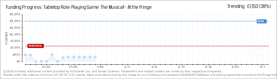 Help your backers reach your daily goals and help others see how you're doing. It's easy, with Kicktraq Mini.Here are a few quick snippits of code you can use to embed your personalized widget on your website, in your blog, and even on your favorite forum.