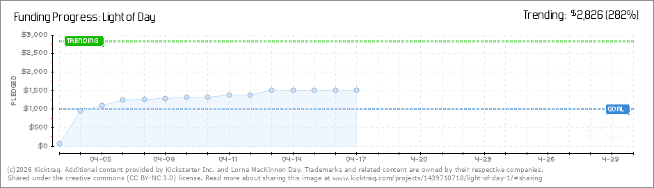 Help your backers reach your daily goals and help others see how you're doing. It's easy, with Kicktraq Mini.Here are a few quick snippits of code you can use to embed your personalized widget on your website, in your blog, and even on your favorite forum.