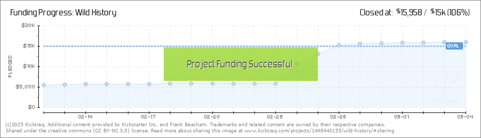 Wild History, my Kickstarter project, successfully concluded today. I wish to thank you and the generous contributors who made it all possible. The work we’ll do in the next few months on this project will be fun, adventurous and rewarding. I will... (Read More)