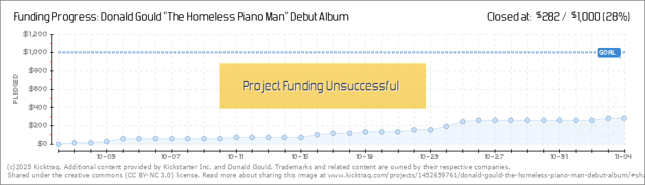 Donald Gould (The Homeless Piano Man) - is doing an entire studio album! Be the first to get a CD + digital download copy!