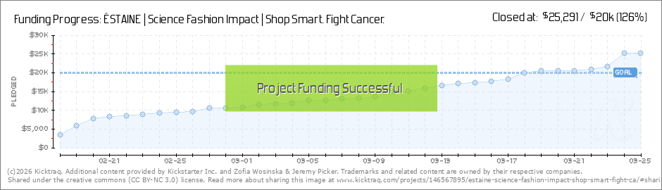 100+ backers and $8000K (40% to goal) day 4 of 34!!! Thank you for helping us make beautiful impact through high fashion that sparks conversations about early cancer detection. We are excited to keep you posted on the progress of the campaign... (Read More)