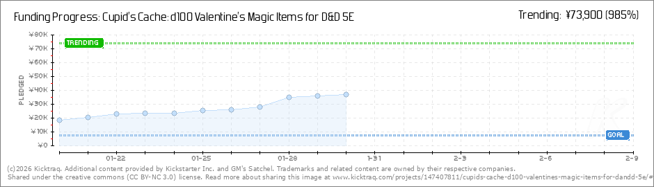 Hello Adventurers! We have officially crossed the funding goal! A massive thank you to the backers who jumped in to support the project so far. Thanks to you, Cupid’s Cache is officially a reality. When do I get my rewards? Since the content is... (Read More)