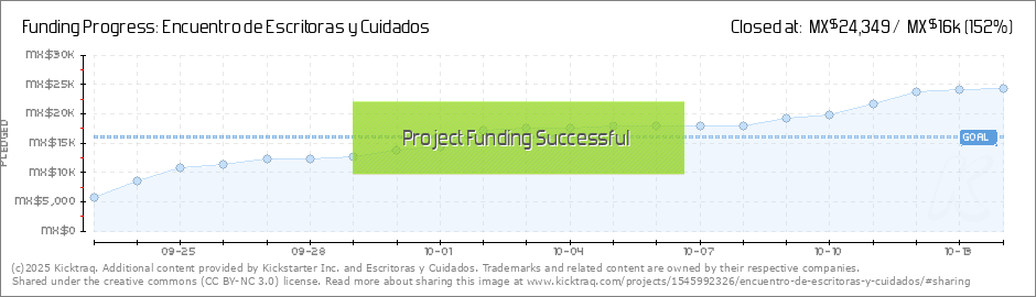 ¡Hola! Queremos, antes que nada, agradecerles muchísimo por estar contribuyendo a que esta campaña se encuentre tan cerca de su meta en tan pocos días. Poco a poco iremos contactando a cada una y cada uno para la entrega de su recompensa en... (Read More)
