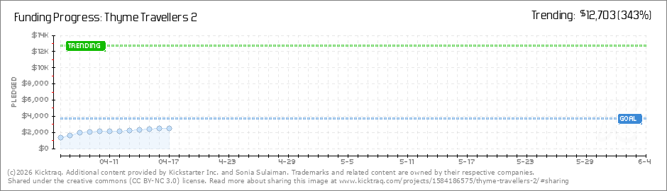 You're incredible! Thank you so much for following and donating to make this sequel to Thyme Travellers a reality! We're sitting at 18% funded already. I've answered a few common questions, so do check out the FAQ. -Sonia (Read More)