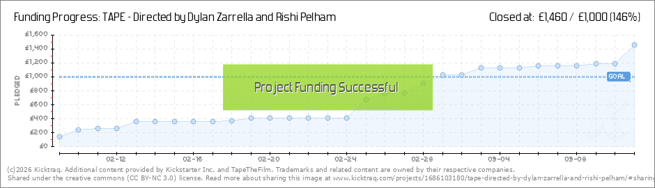 Thanks to all of your incredible help, WE HAVE REACHED OUR GOAL FOR FUNDING! A humongous thank you to all of you who have helped us to make TAPE happen! Warmest regards, Directors, Dylan Zarrella and Rishi Pelham (Read More)
