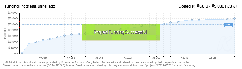 Thank you all so much for your support!! In 3 days, this Kickstarter project will complete successfully!!! At that point you should receive a survey from Kickstarter that asks you for your desired BarePadz size and shipping address and T-Shirt size... (Read More)