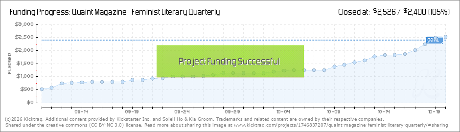 Hello friends! Thank you so much for boosting and donating our campaign to raise printing and operational funds for our tiny little feminist quarterly! We're only $1000 away from meeting our goal, so to bring it all home we're going to give all of... (Read More)