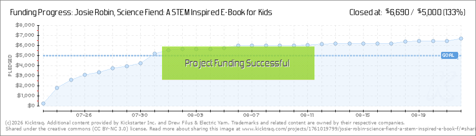We didn't expect to be communicating with you again so soon! We are truly amazed by the generosity and the speed in which we have met our initial goal. In just one week, we have reached our first goal on Kickstarter for JOSIE ROBIN, SCIENCE FIEND!... (Read More)