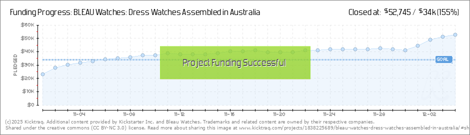 It has been 6 days since we officially launched and this afternoon we hit our funding milestone! I am incredibly overwhelmed by the positive response of Bleau Watches. All I have to say is thank you all so much for supporting this project! I just... (Read More)