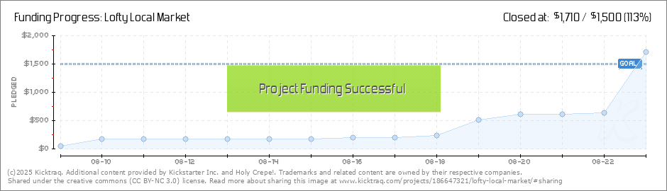 The lofty local market is now open for business! Our first suppliers are Crazy 8cres and Sweet Berrry Farms! It's a very exciting day! (Read More)