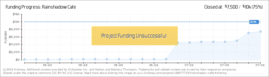 Help your backers reach your daily goals and help others see how you're doing. It's easy, with Kicktraq Mini.Here are a few quick snippits of code you can use to embed your personalized widget on your website, in your blog, and even on your favorite forum.
