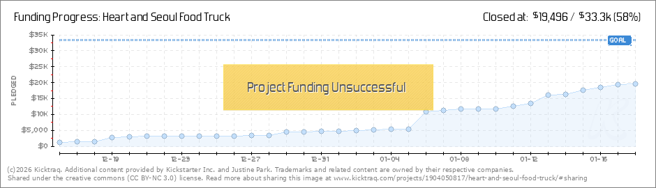 Sooo it's 21 days to reach the $33,300 target! Thank you SO much for backing the Heart and Seoul Food Truck!! I hope everyone is enjoying their holiday week! I spent a lot of time with my mom in the kitchen cooking up a storm. We are quite the duo... (Read More)