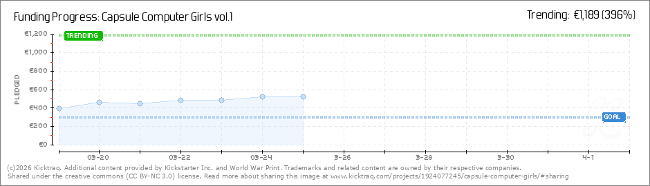 Help your backers reach your daily goals and help others see how you're doing. It's easy, with Kicktraq Mini.Here are a few quick snippits of code you can use to embed your personalized widget on your website, in your blog, and even on your favorite forum.