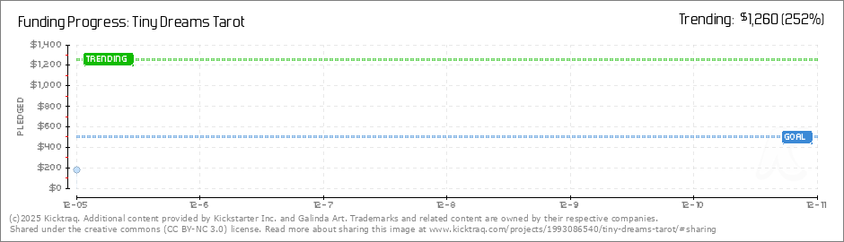 Help your backers reach your daily goals and help others see how you're doing. It's easy, with Kicktraq Mini.Here are a few quick snippits of code you can use to embed your personalized widget on your website, in your blog, and even on your favorite forum.