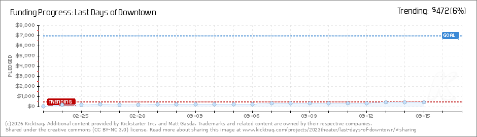 Help your backers reach your daily goals and help others see how you're doing. It's easy, with Kicktraq Mini.Here are a few quick snippits of code you can use to embed your personalized widget on your website, in your blog, and even on your favorite forum.