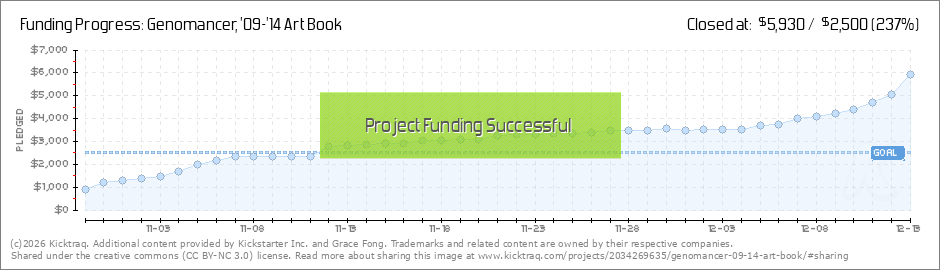 Less than $100 to that audiobook! Almost there! *o* READ MORE ON KICKSTARTER: http://kck.st/1sLzDZm PLEDGE WITH PAYPAL: http://gracepfong.com/genomancer-artbook-shop SPREAD THE WORD: Facebook:... (Read More)