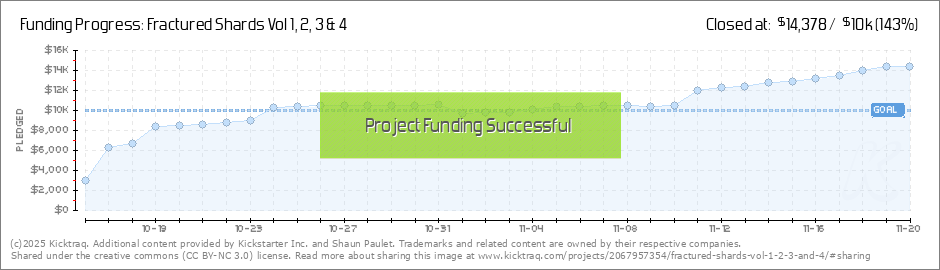 Hey everyone, We are beyond thrilled to announce that thanks to 117 amazing backers, we’ve officially smashed our initial $10,000 goal for Fractured Shards Volume 4! 🥳 Your support means the world to us — every pledge, comment, and share has... (Read More)