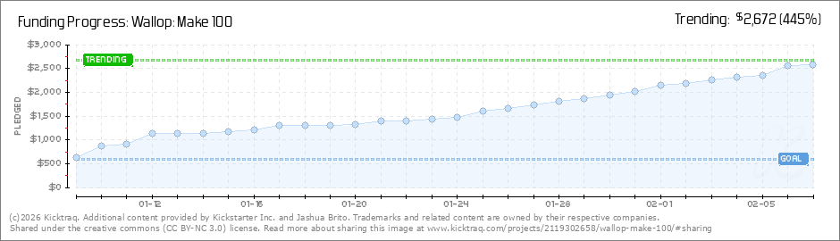 Help your backers reach your daily goals and help others see how you're doing. It's easy, with Kicktraq Mini.Here are a few quick snippits of code you can use to embed your personalized widget on your website, in your blog, and even on your favorite forum.