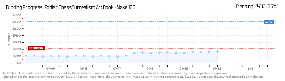 Help your backers reach your daily goals and help others see how you're doing. It's easy, with Kicktraq Mini.Here are a few quick snippits of code you can use to embed your personalized widget on your website, in your blog, and even on your favorite forum.