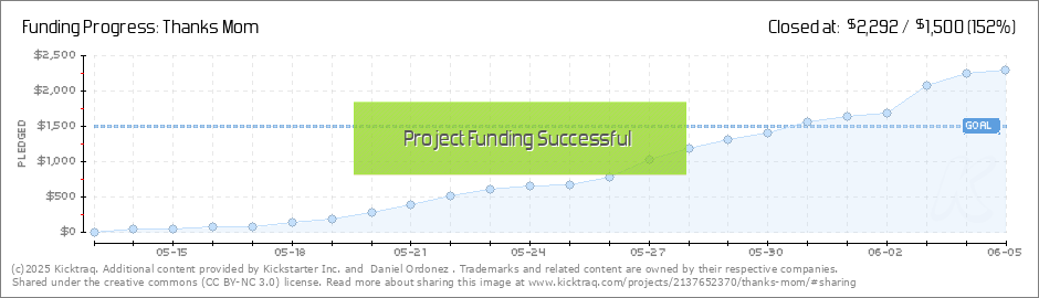 Help your backers reach your daily goals and help others see how you're doing. It's easy, with Kicktraq Mini.Here are a few quick snippits of code you can use to embed your personalized widget on your website, in your blog, and even on your favorite forum.
