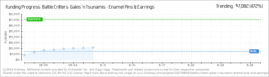 Help your backers reach your daily goals and help others see how you're doing. It's easy, with Kicktraq Mini.Here are a few quick snippits of code you can use to embed your personalized widget on your website, in your blog, and even on your favorite forum.