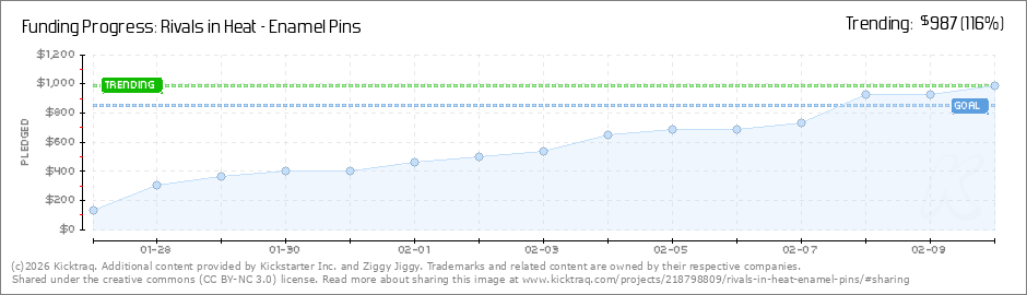 Help your backers reach your daily goals and help others see how you're doing. It's easy, with Kicktraq Mini.Here are a few quick snippits of code you can use to embed your personalized widget on your website, in your blog, and even on your favorite forum.