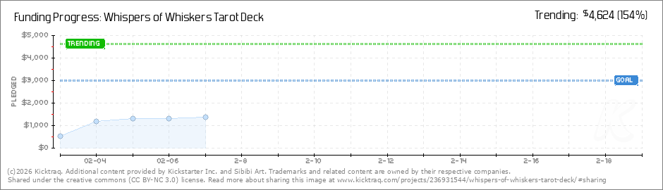 Help your backers reach your daily goals and help others see how you're doing. It's easy, with Kicktraq Mini.Here are a few quick snippits of code you can use to embed your personalized widget on your website, in your blog, and even on your favorite forum.