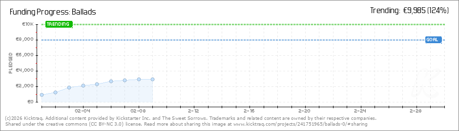 Help your backers reach your daily goals and help others see how you're doing. It's easy, with Kicktraq Mini.Here are a few quick snippits of code you can use to embed your personalized widget on your website, in your blog, and even on your favorite forum.