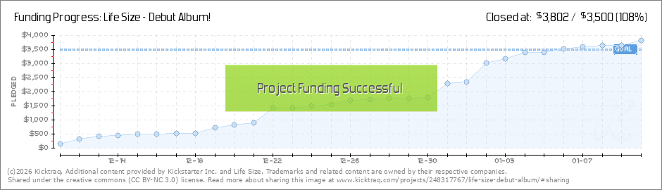 On behalf of the band, I'd like to send out a sincere "thank you" to all 59 (wow!) people who have backed our project thus far. We sincerely appreciate your interest in our project, and cannot WAIT to share it with you all! With just over a week... (Read More)