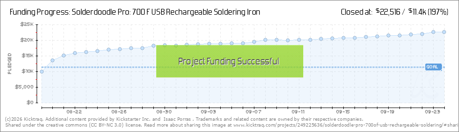 Hi all backers! Thanks to you, Solderdoodle Pro has now reached $20k funding with 2 weeks left in the campaign! Please continue to spread the word about Solderdoodle Pro so that they can also be the first to own a USB rechargeable soldering iron at a... (Read More)