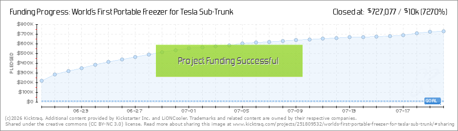 AcoPower has launched a Kickstarter crowdfunding campaign for the TesFridge. The company claims the gadget is the world’s first portable freezer designed to fit a Tesla Sub-Trunk. (Read More)