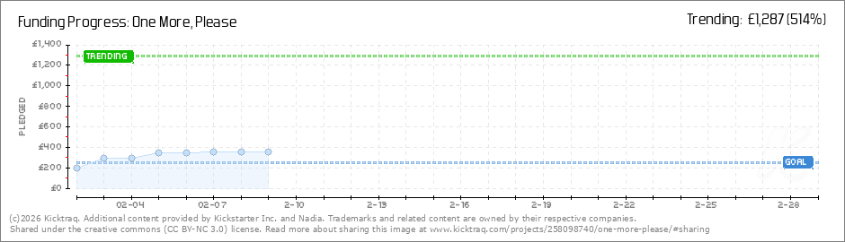 Help your backers reach your daily goals and help others see how you're doing. It's easy, with Kicktraq Mini.Here are a few quick snippits of code you can use to embed your personalized widget on your website, in your blog, and even on your favorite forum.