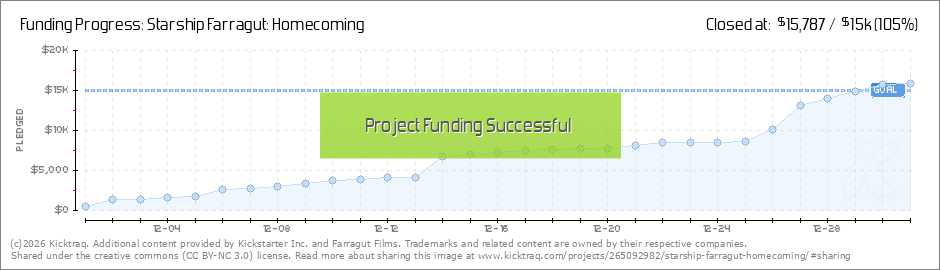 With 15 days left, we're just about 1/2 way there - thanks to all who desire to see Starship Farragut end a decade's body of work with one last mission in the Classic TREK genre. Please keep continuing to get the word out and in supporting our... (Read More)