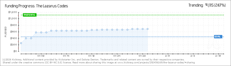 Help your backers reach your daily goals and help others see how you're doing. It's easy, with Kicktraq Mini.Here are a few quick snippits of code you can use to embed your personalized widget on your website, in your blog, and even on your favorite forum.