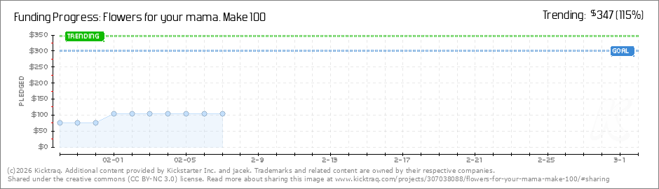 Help your backers reach your daily goals and help others see how you're doing. It's easy, with Kicktraq Mini.Here are a few quick snippits of code you can use to embed your personalized widget on your website, in your blog, and even on your favorite forum.