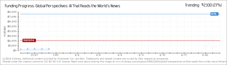Help your backers reach your daily goals and help others see how you're doing. It's easy, with Kicktraq Mini.Here are a few quick snippits of code you can use to embed your personalized widget on your website, in your blog, and even on your favorite forum.