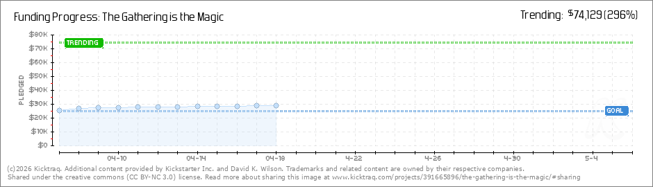 Help your backers reach your daily goals and help others see how you're doing. It's easy, with Kicktraq Mini.Here are a few quick snippits of code you can use to embed your personalized widget on your website, in your blog, and even on your favorite forum.