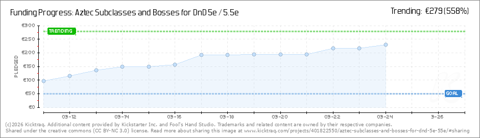 We did it! The project has reached €200, which means the first Stretch Goal is officially unlocked. All backers will receive, completely for free: Ocelotl, Spirit of the HuntA powerful new encounter, including: Full stat block Token in two versions... (Read More)